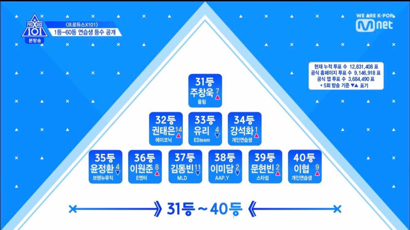 Theo đó, Lee Dong Wook cũng đã tuyên bố rằng cuộc chiến vòng 2 sẽ chỉ còn 30 thực tập sinh tiếp tục chiến đấu. Dưới đây là 10 thực tập sinh. Các số trong ngoặc đơn là những thay đổi so với bảng xếp hạng của các thực tập sinh kể từ cuối buổi công bố vào tuần trước.