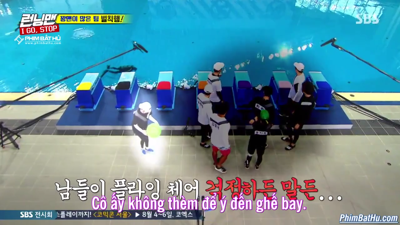 Bên cạnh đó, đã lâu lắm rồi chiếc ghế bay kinh hoàng mới có dịp tái xuất chào đón các thành viên Running Man. Vì là người mới nên So Min chẳng hề biết chiếc ghế “tưởng chừng đáng yêu” này lại kinh hoàng đến mức nào. Ngay khi được nếm mùi, So Min đã bị hất bay lên và ngã sấp mặt xuống nước khiến các thành viên còn lại vô cùng lo sợ. Ngay khi được đưa lên bờ, cô nàng đã ngay lập tức quyết định: “Em sẽ chẳng thể tham gia Running Man được nữa”.