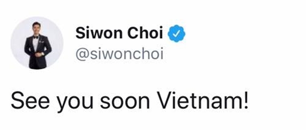 Sáng nay 29/10, người hâm mộ được một phen xôn xao khi Choi Siwon bất ngờ đăng tải trên Twitter dòng chữ “See you soon Vietnam” (Hẹn sớm gặp lại nhé Việt Nam). Ngay khi các fan của anh chàng còn đang “bấn loạn”, rục rịch chuẩn bị để tiếp đón nam ca sĩ thì trưa nay Siwon đã có mặt tại Hà Nội cùng thành viên Jaemin (NCT) tham dự hoạt động của UNICEF. Khỏi phải nói các fan “đứng ngồi không yên” thế nào trước hành động “quá nhanh, quá nguy hiểm” này của thành viên Super Junior!