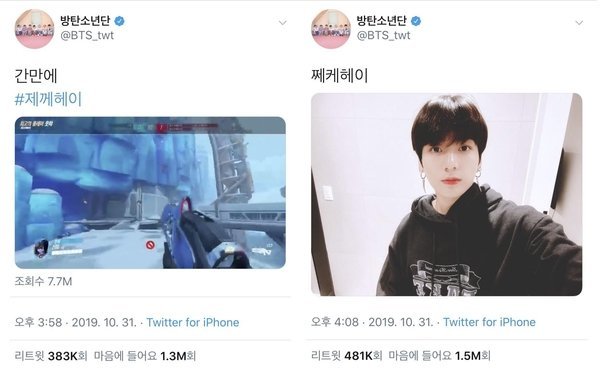 Giữa lúc này, một bài viết đã được đăng trên cộng đồng mạng vào buổi chiều sau một vụ tai nạn xe hơi. Bài đăng này của Jungkook cũng được chia sẻ vào khoảng 4h chiều ngày 31/10. Bài đăng đầu tiên là video chơi game. Sau 10 phút, hình ảnh selfie của Jungkook cũng đã được chia sẻ.