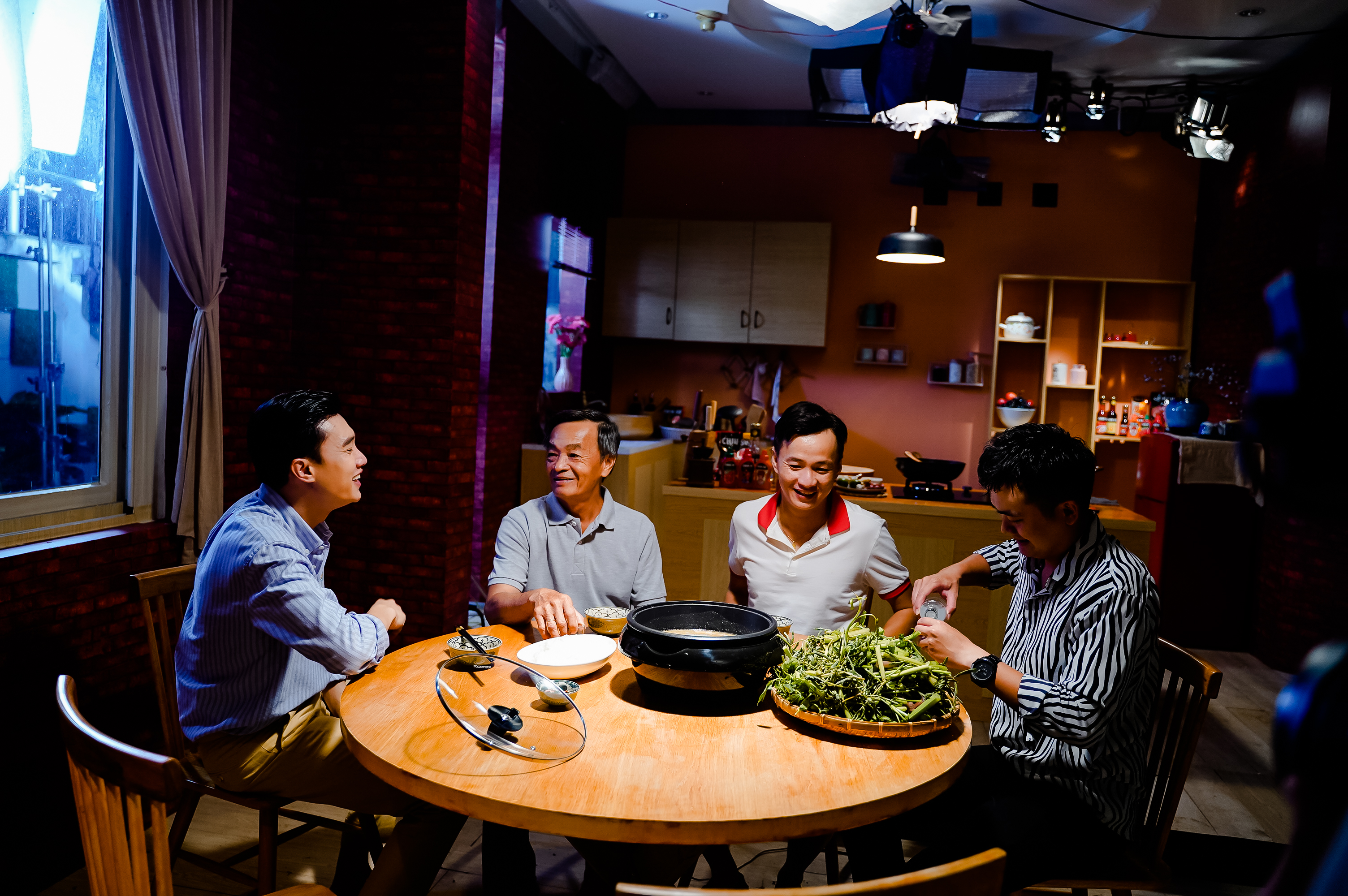 Quốc Trường chia sẻ anh cảm thấy rất ấm áp khi được quây quần bên gia đình và người bạn thân của mình sau thời gian làm việc căng thẳng. Những giây phút ấm áp chỉ có thể đến từ những người ta thương yêu vì thế anh hy vọng mỗi người dù bận đến đâu thì cũng nên dành thời gian để ngồi lại cùng nhau, trò chuyện và ăn một bữa cơm ấm cúng.