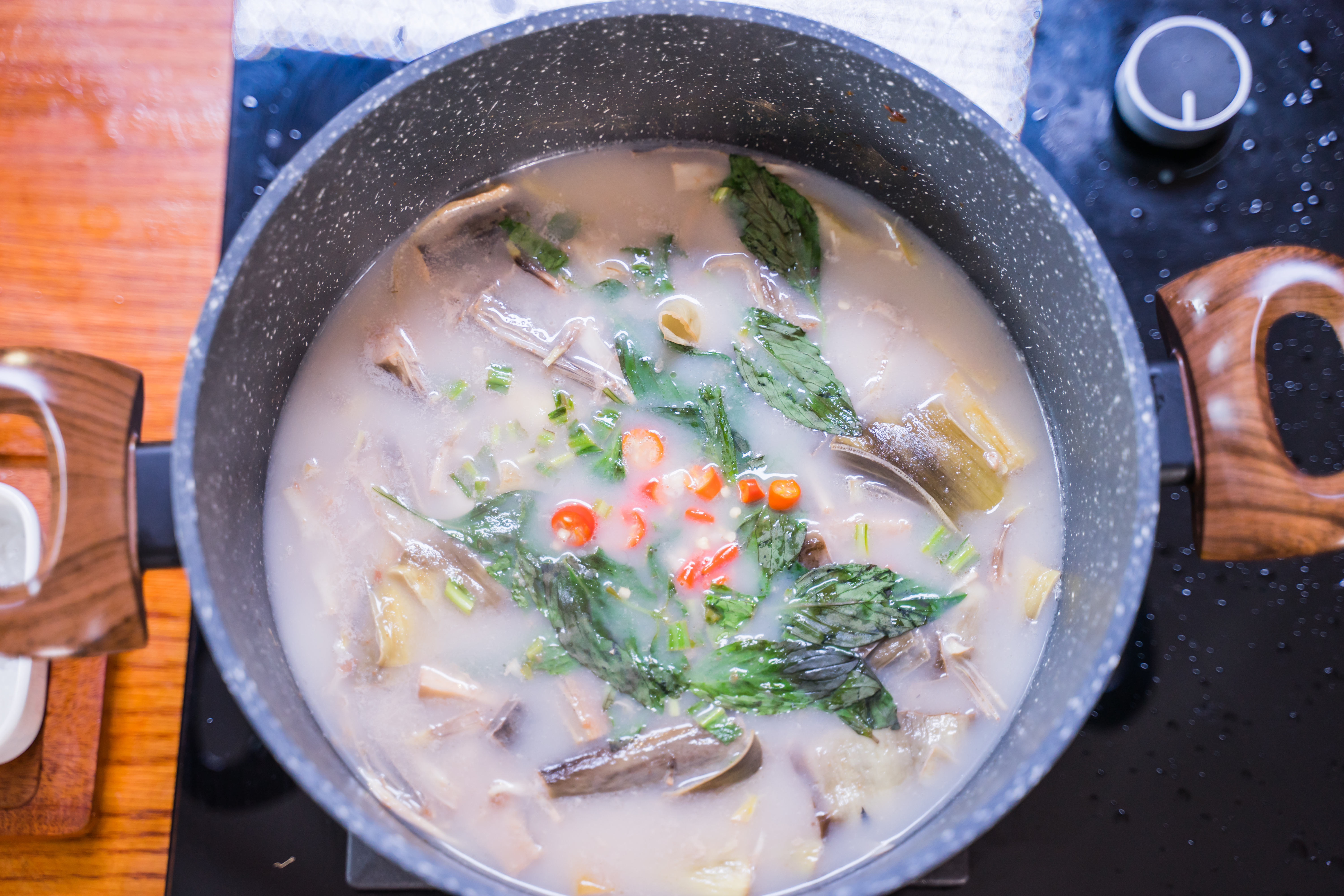 Đến với số tiếp theo, Quốc Trường thực hiện món canh xiêm lo với khô cá rún được truyền lại từ ông ngoại và khô cá rún chiên giấm đường, bông điên điển xào tép bạc để chiêu đãi cô bạn thân.