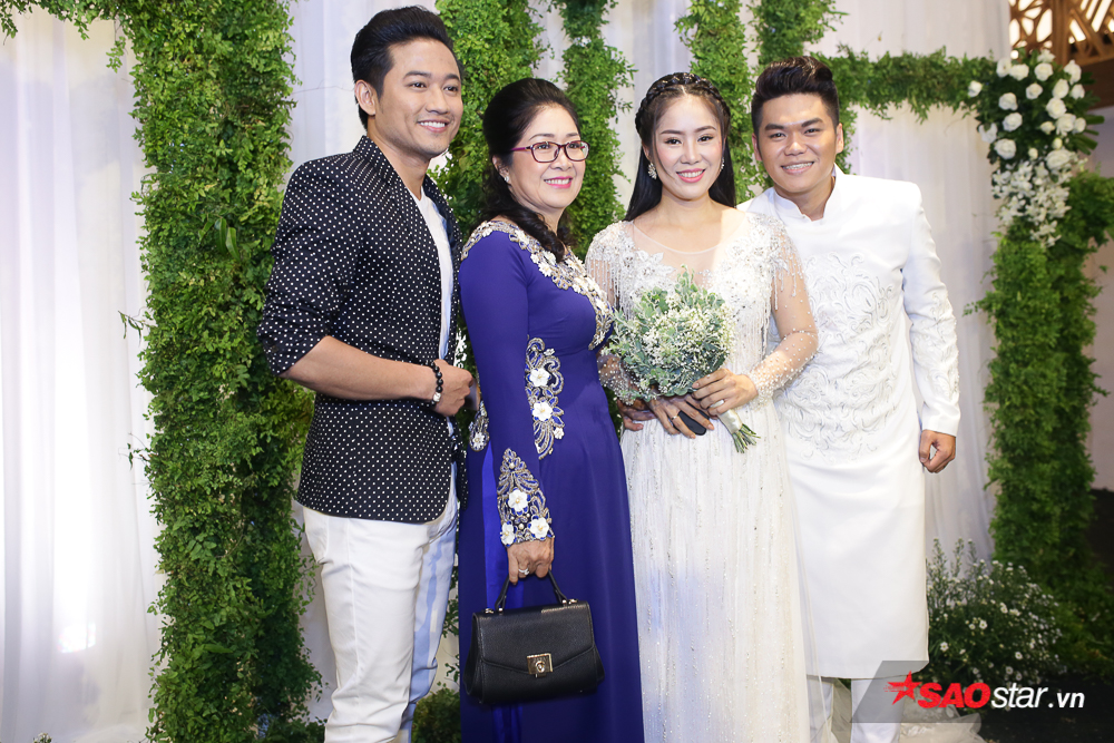 Quý Bình chụp ảnh cùng Lê Phương - Trung Kiên và mẹ cô dâu.