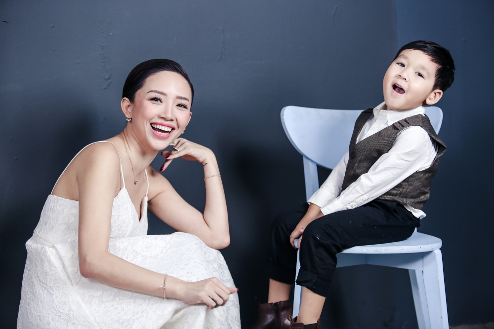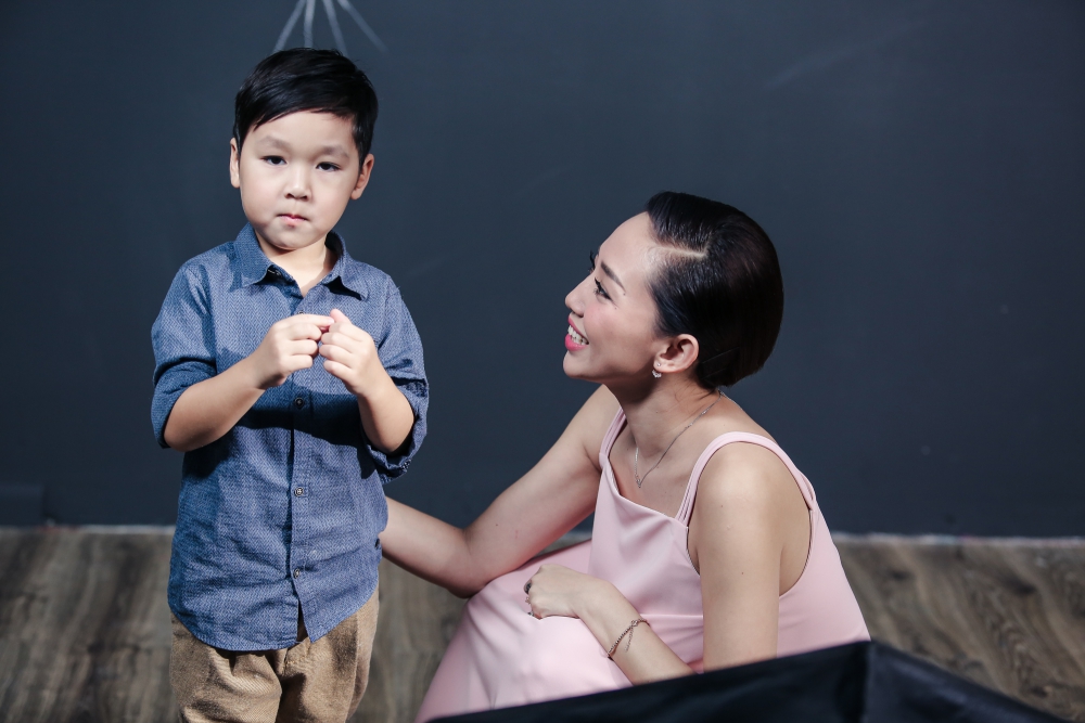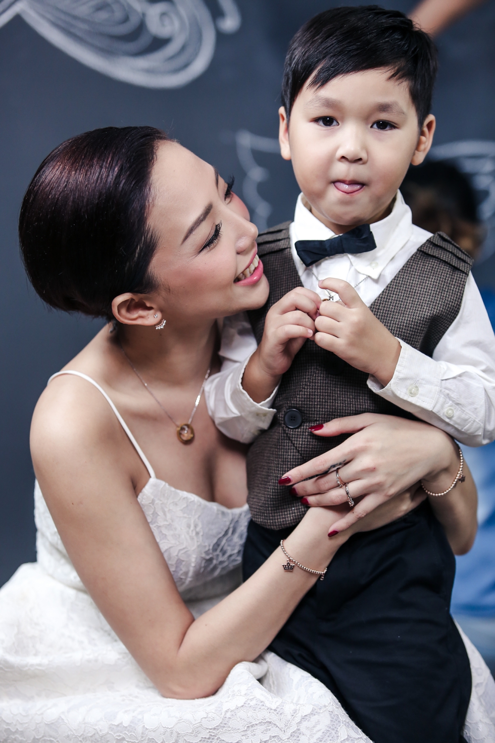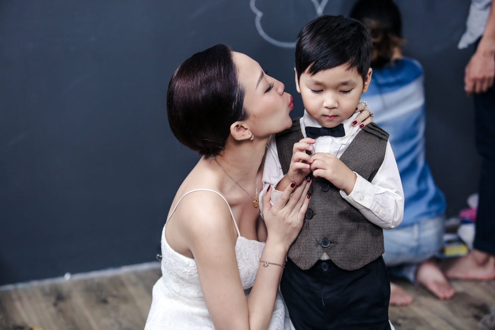 Người đẹp khá vất vả vì nhóc tì không chịu hợp tác.