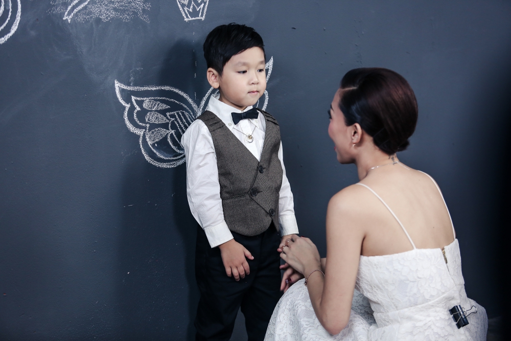 Quá trình thực hiện bộ ảnh, Tóc Tiên nói cô rất vất vả vì nhóc tì không chịu hợp tác: “Cậu bé khá nhút nhát và đây là lần đầu cả hai gặp nhau nên việc làm “hoàng tử” của Tiên có vẻ khiến bé bj đơ”. Để giải quyết Tóc Tiên liên tục pha trò, cô trò chuyện và tìm hiểu sở thích của nhóc tì. Thâm chí, cô còn gọi điện thoại mượn mèo của bạn mình chỉ vì đây là loài vật cậu bé yêu thích.