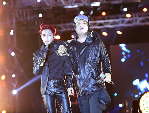 LK và Sơn Tùng trong show diễn của nam ca sĩ Thái Bình.