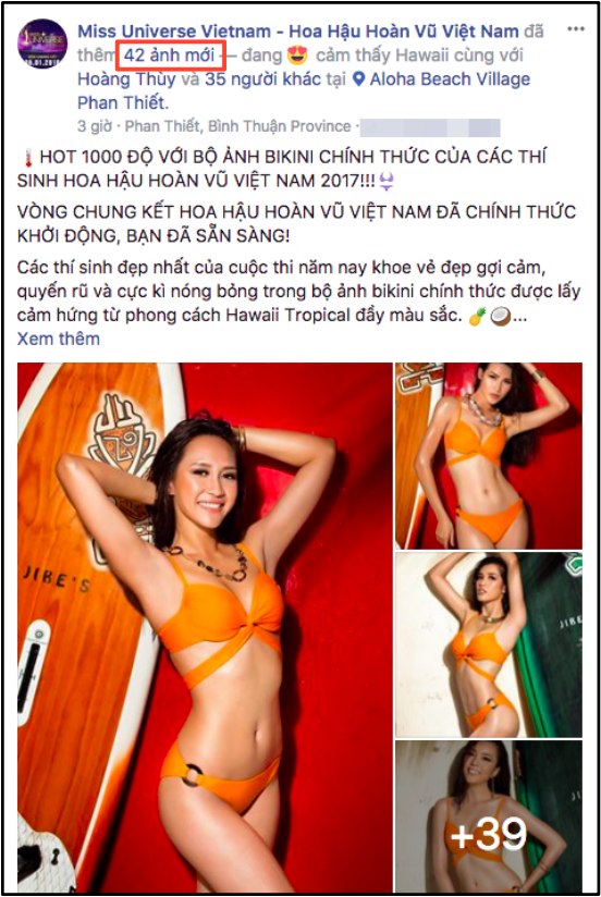 Chỉ có 42 bức ảnh được đăng tải trên fanpage chính thức của Hoa hậu Hoàn vũ Việt Nam 2017.