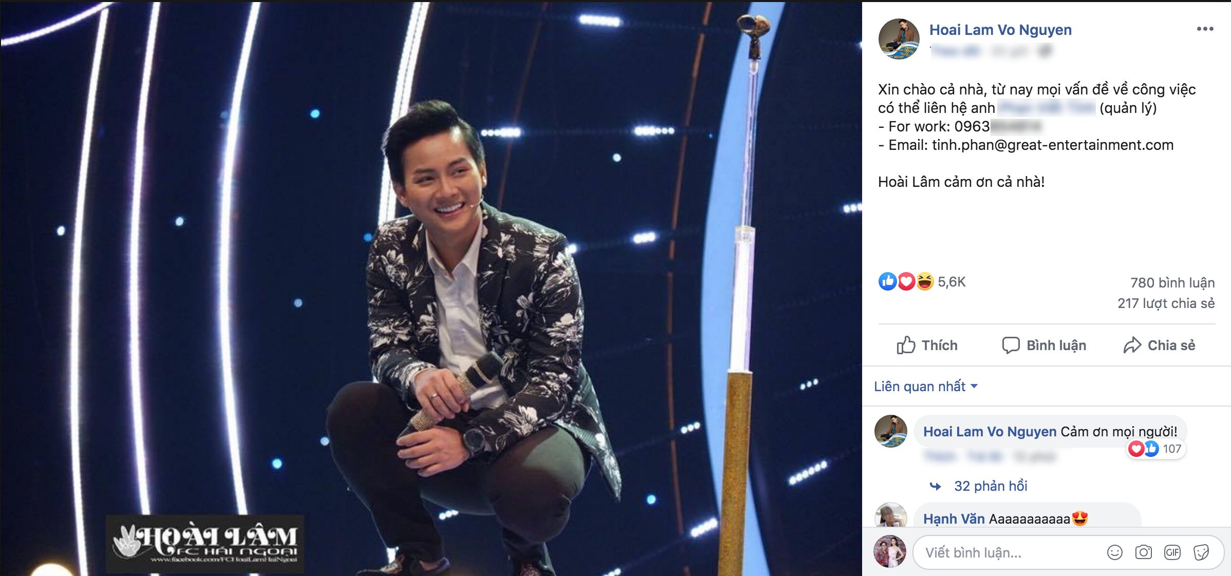 Thì mới đây trên trang cá nhân, một lần nữa Hoài Lâm lại khiến khán giả cũng như người hâm mộ một phen “dậy sóng” với dòng tin được cho là anh sẽ trở lại showbiz. Theo đó, anh đưa thông tin hệ quản lý riêng của mình để tiện cho mọi vấn đề công việc.