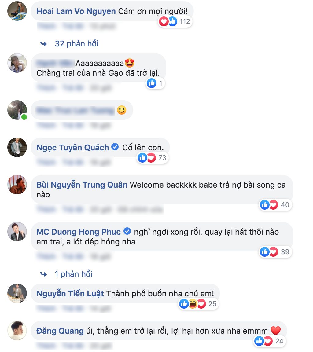 Hầu hết công chúng đều trông ngóng sự trở lại lần này của Hoài Lâm kể cả bạn bè đồng nghiệp trong showbiz cũng chia sẻ tỏ ý vui mừng trước quyết định bất ngờ của nam ca sĩ.