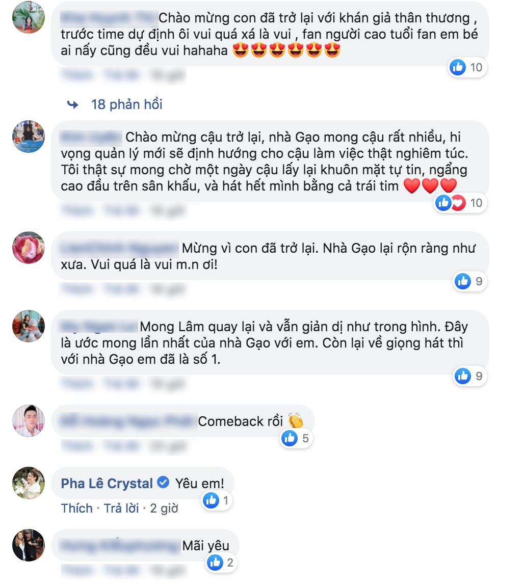 Bên dưới dòng trạng thái có rất nhiều bình luận phản ứng bao gồm cả nhà Gạo (tên fandom của nam ca sĩ) cùng với khán giả hâm mộ anh cho rằng Hoài Lâm trở lại showbiz trong thời gian tới.