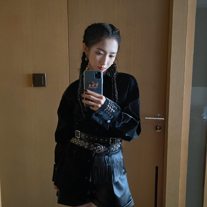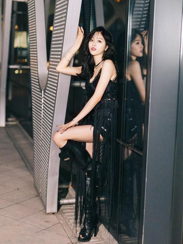 Đầu tiên hãy đến xem tạo hình của cô nàng Mạnh Mỹ Kỳ. Cô nàng lựa chọn cho mình môt bộ cánh màu đen, quần short đen nhấn nhá thêm vài đường tua rua phối thêm với đôi dày da màu đen. Với tạo hình này, cô nàng dễ dàng khoe đôi chân dài của bản thân hơn.