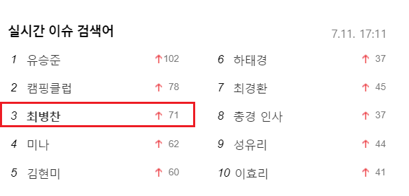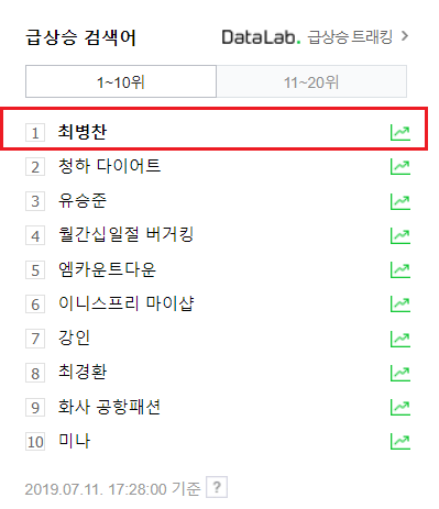 Từ khóa “Choi Byung Chan” ở hạng 3 trên Nate.