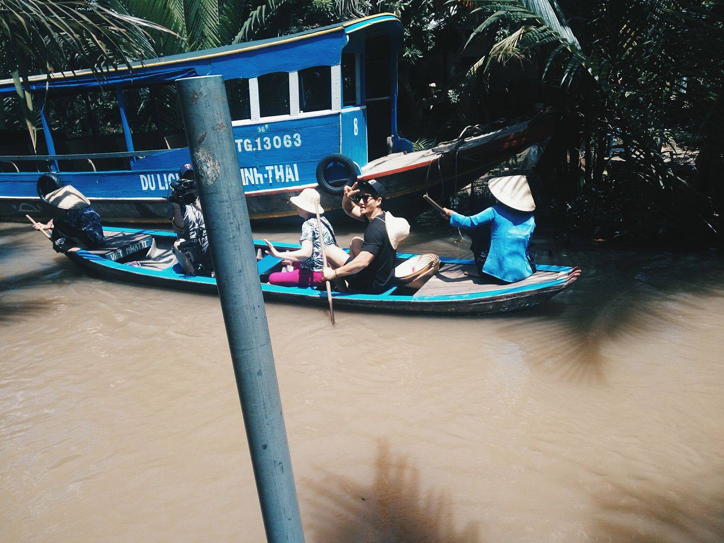 Và hiện, chàng Hổ Kim Jong Kook đang hào hứng chèo thuyền ở vù lao Thới Sơn (Tiền Giang)