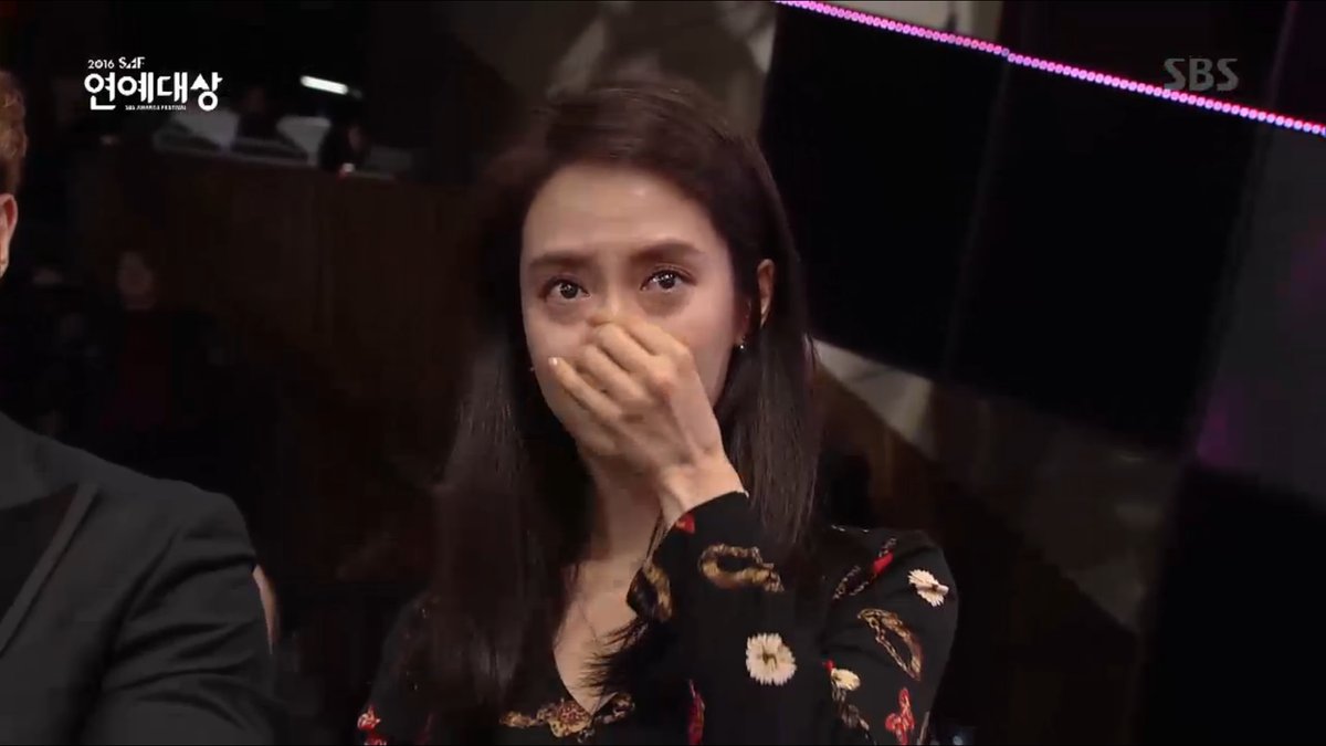 Lắng nghe bài phát biểu chân thành của Kwang Soo, Song Ji Hyo đỏ hoe mắt vì xúc động.