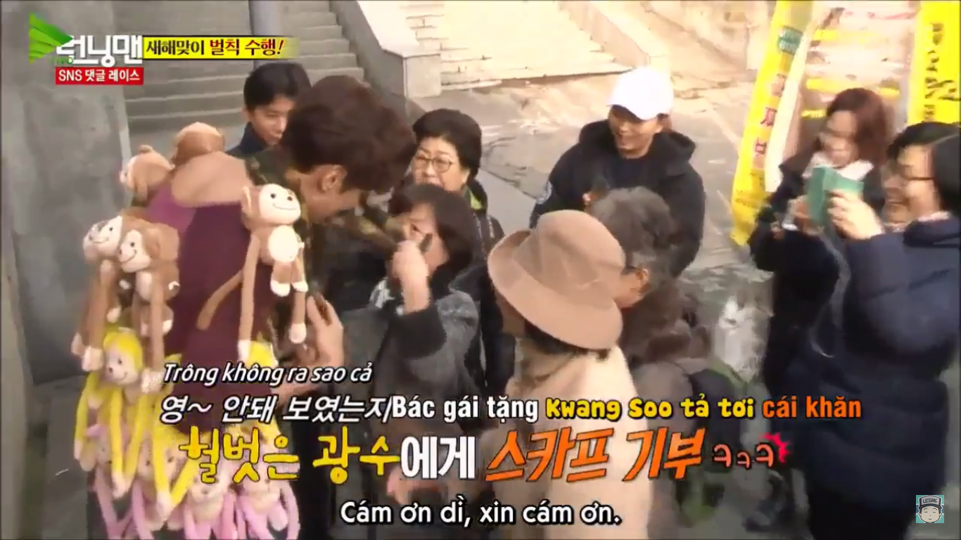 Hình phạt này khiến các fan một lần nữa cười nghiêng ngả khi còn nhớ năm trước trong tập 280 Kwang Soo cũng đã thua trong thử thách cuối cùng và phải mặc bộ đồ làm từ những chú khỉ nhồi bông đi về nhà. Các bà nội trợ đã vây quanh anh chàng để xin về cho cháu mình khiến anh chàng vô cùng ngượng ngùng.
