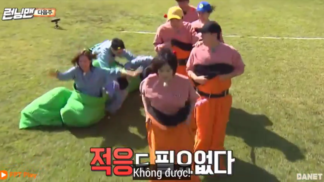 Vừa vào cuộc chơi là cú ký đầu cực mạnh của Ha Na dành cho Kim Jong Kook khiến anh chàng nhăn mặt vì đau đớn. Ngay sau đó, loạt thử thách gồm các trò chơi thổi bột, đâm thủng khung nilon, nhảy bao vải lần lượt được thực hiện. Nhưng dường như chẳng gì có thể làm khó team Running Man và khách mời khi làm nhiệm vụ.