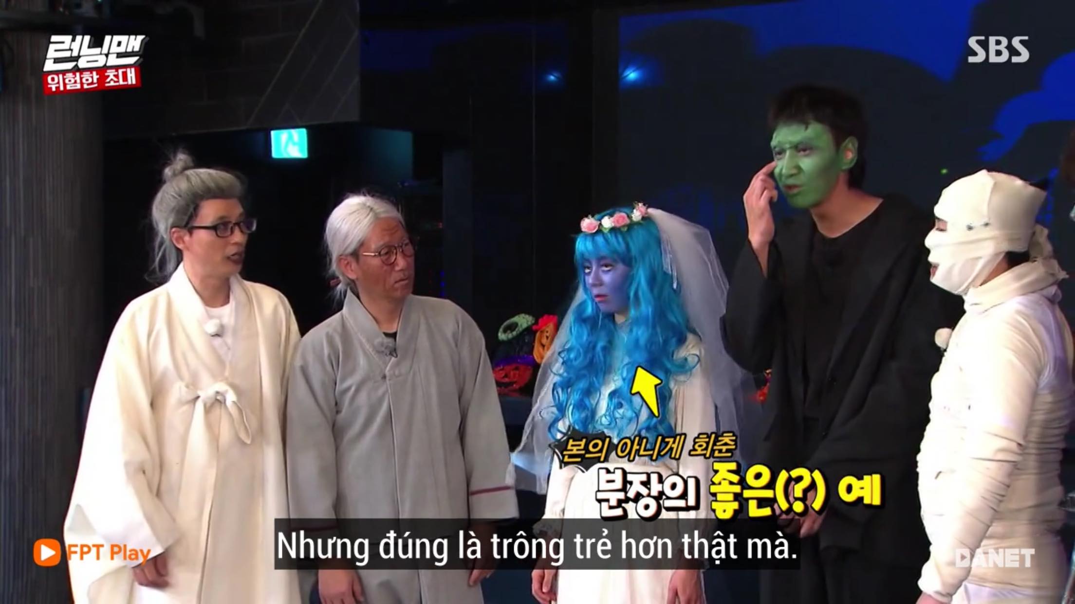 Các thành viên đội Running Man trong những bộ trang phục hóa trang kinh dị.