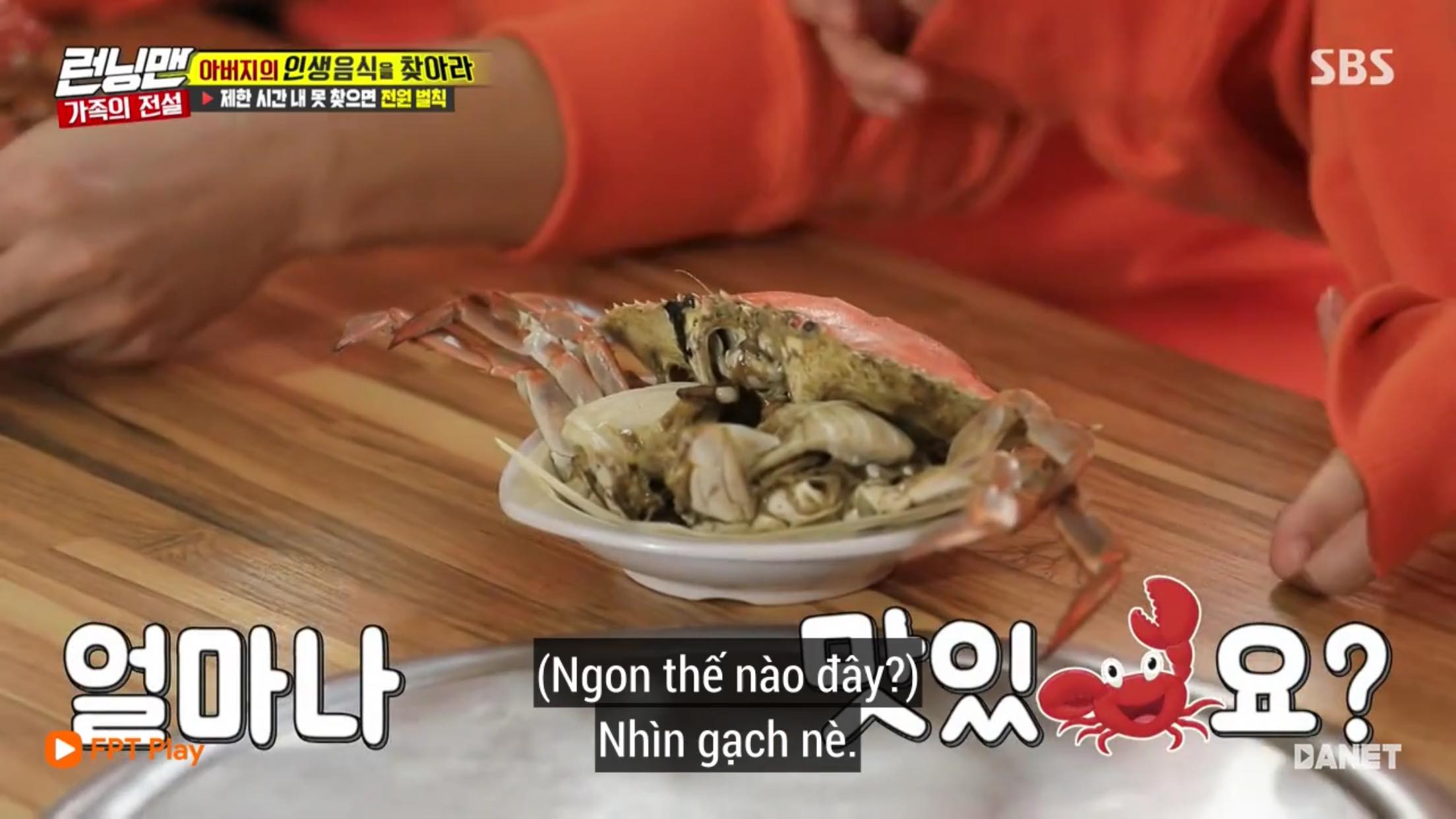 Sau thử thách, team Running Man bất ngờ khám phá ra gợi ý tiếp theo nằm ở đáy một chiếc đĩa. Gợi ý chỉ ra rằng không chỉ sống dưới nước mà loài vật này khi chạm vào rất đáng sợ. Lần này, điều cả team nghĩ tới chính là ghẹ và cá mòi.