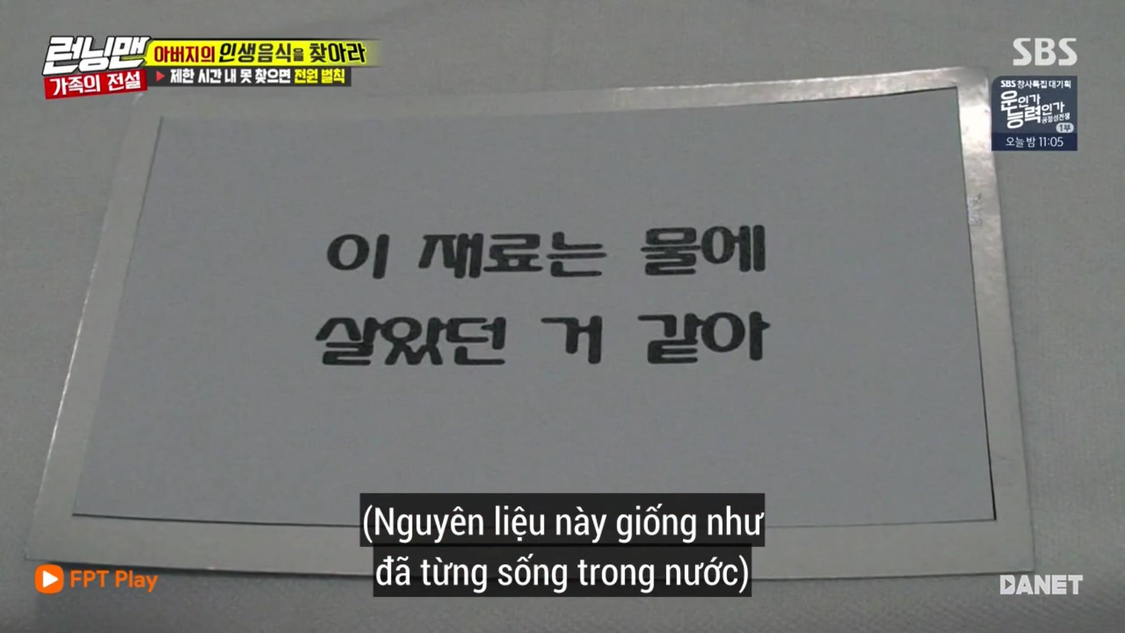 Hoàn thành thử thách đầu tiên, cả team phải tốn kha khá thời gian với gợi ý “Nguyên liệu này giống như từng sống trong nước”. Cộng thêm gợi ý của người cha trước đó, cả team đoán rằng đó là một loại tôm và cùng nhau di chuyển đến với nơi chế biến loại tôm đó.