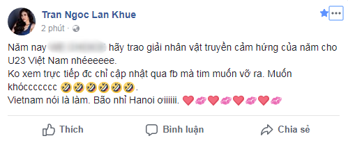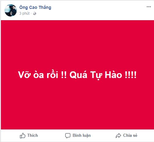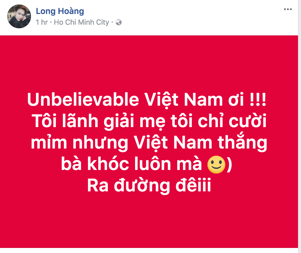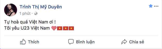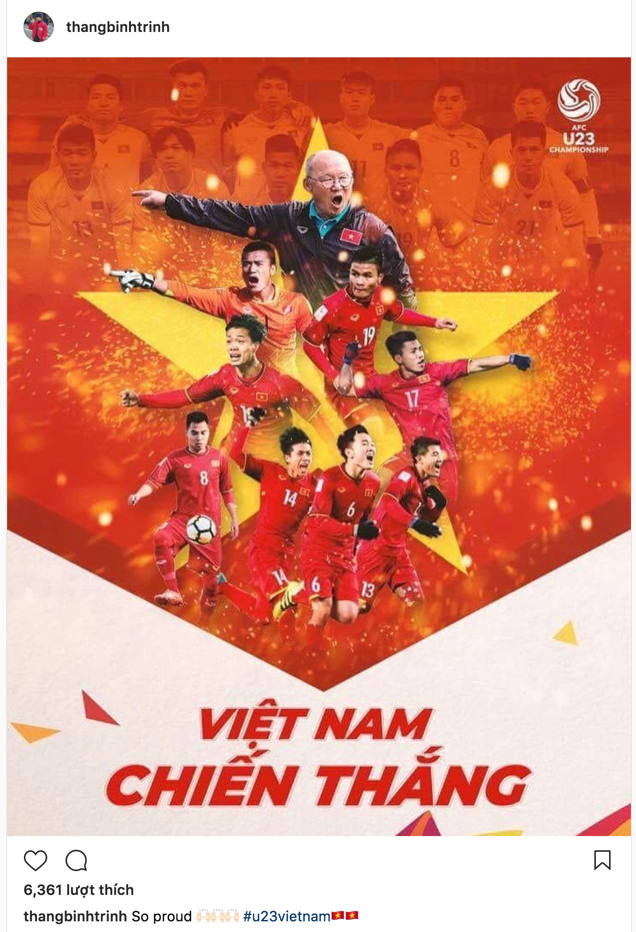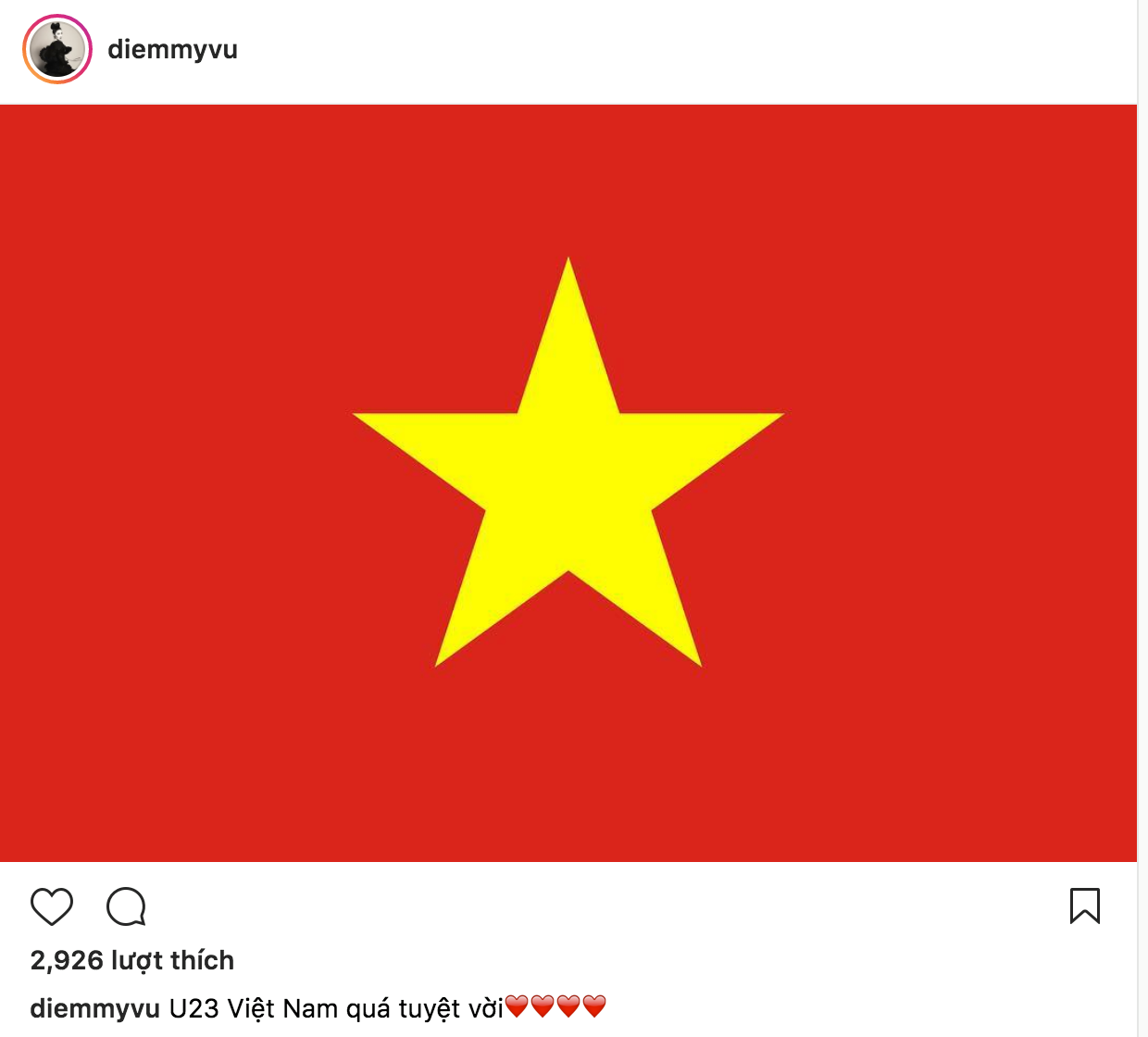 Rất đông người hâm mộ đã bày tỏ nỗi xúc động, niềm hạnh phúc, tự hào dân tộc trước chiến thắng của đội tuyển Việt Nam. Đặc biệt, trên trang cá nhân của rất nhiều sao Việt như Đông Nhi, Tóc Tiên, Hari Won, Bảo Anh, Thanh Hằng, H'Hen Niê, Mỹ Duyên, cũng không giấu nổi sự vui mừng.