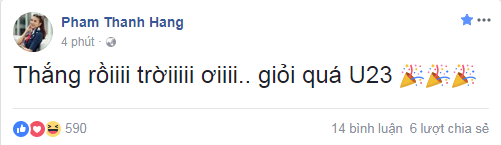 Mỹ Duyên hào hứng trước chiến thắng của đội tuyển Việt Nam.