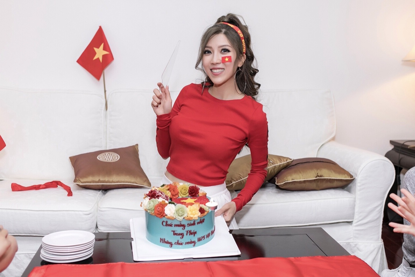 Lựa chọn cách chúc mừng U23 hoàn toàn khác biệt, Trang Pháp tổ chức sinh nhật trong không khí toàn cờ đỏ sao vàng. Chia sẻ về trận chung kết sắp đến, Trang Pháp cho biết: “Kết quả dù có thế nào thì đội tuyển U23 Việt Nam đã là những người hùng trong lòng tất cả người dân Việt Nam. Tất cả chúng ta có thể ăn mừng chiến thắng vang dội của đội tuyển trong mùa giải lịch sử này”.