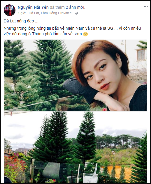 Hải Yến liên tục “hóng” tin bão vì nhiều công việc dang dở của bản thân.