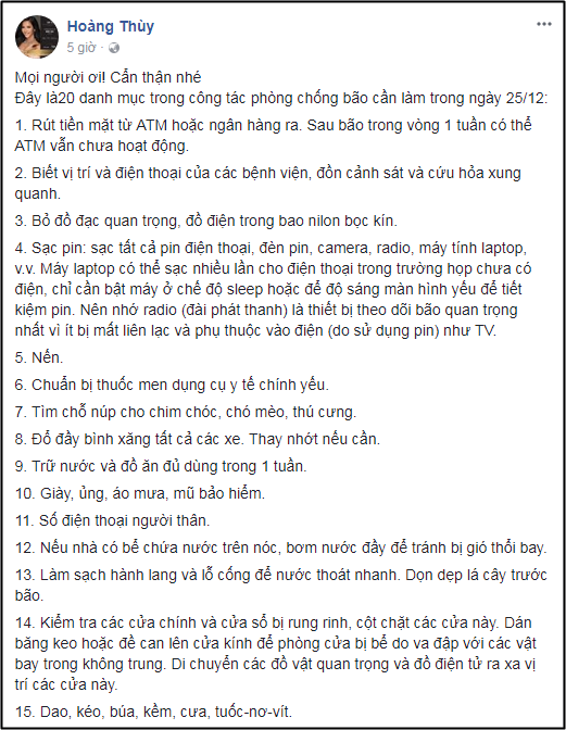 Hàng loạt công tác phòng chống bão được Hoàng Thùy chia sẻ.