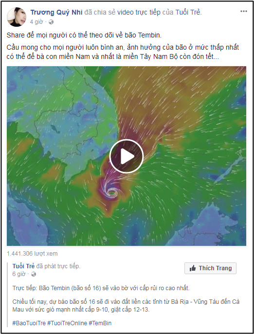 Và thông tin bão được Mâu Thủy liên tục cập nhật.