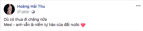 Hoàng Hải Thu nhắn nhủ Messi trên trang cá nhân.