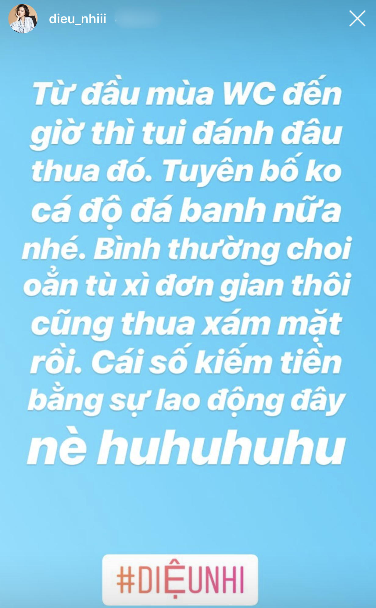 Diệu Nhi tuyên bố sẽ không bao giờ đặt cược vào đá banh nữa.