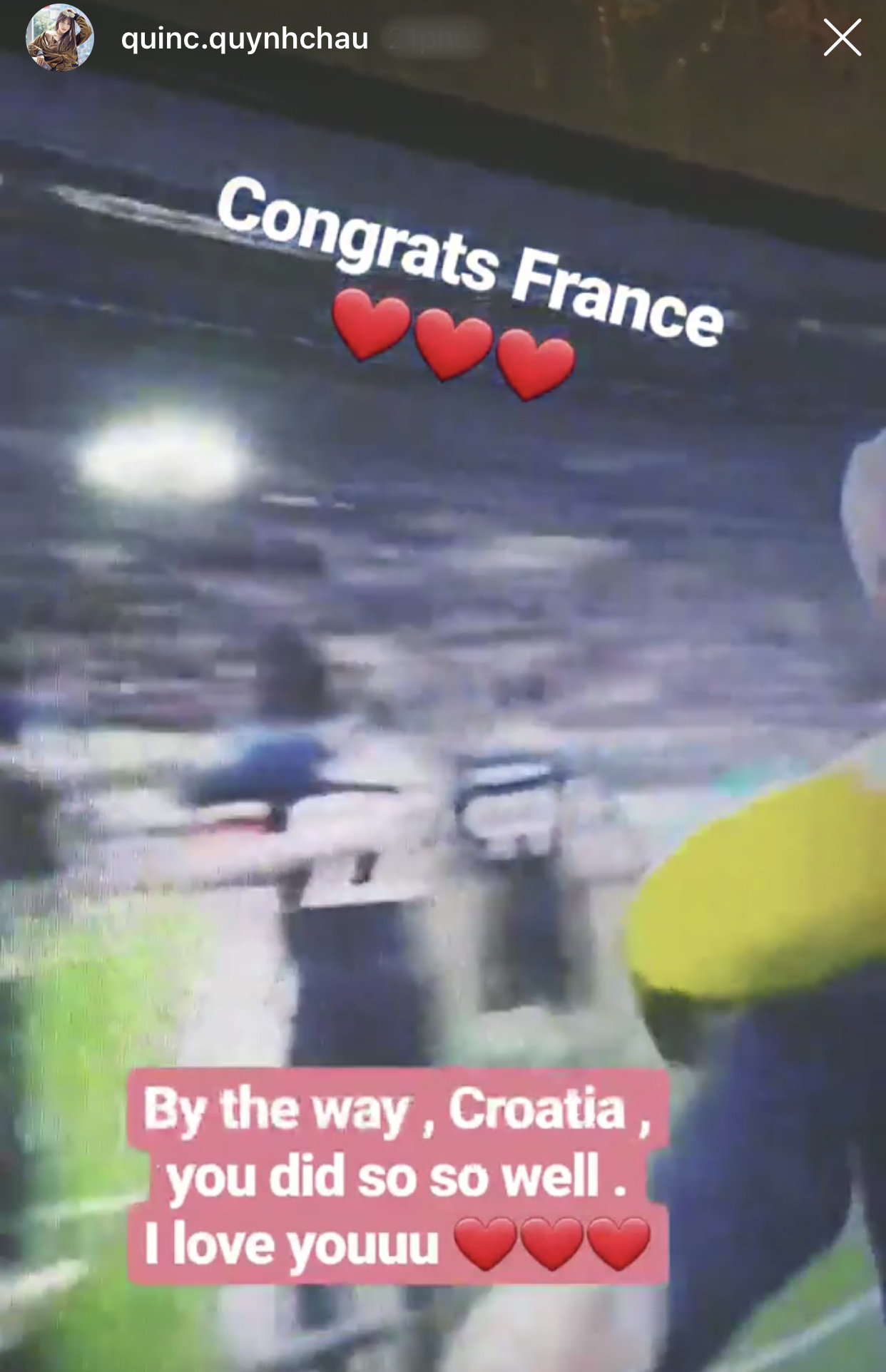 Quỳnh Châu chúc mừng nhà vô địch World Cup nhưng không quên động viên Croatia đã chơi rất tốt trong trận đấu cuối cùng.