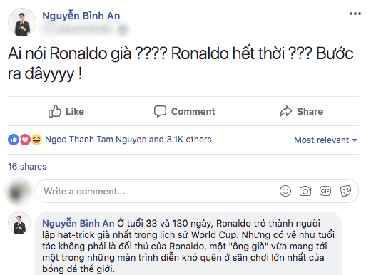 Diễn viên Bình An cực ấn tượng với màn trình diễn của Ronaldo trong trận đấu với Tây Ban Nha.