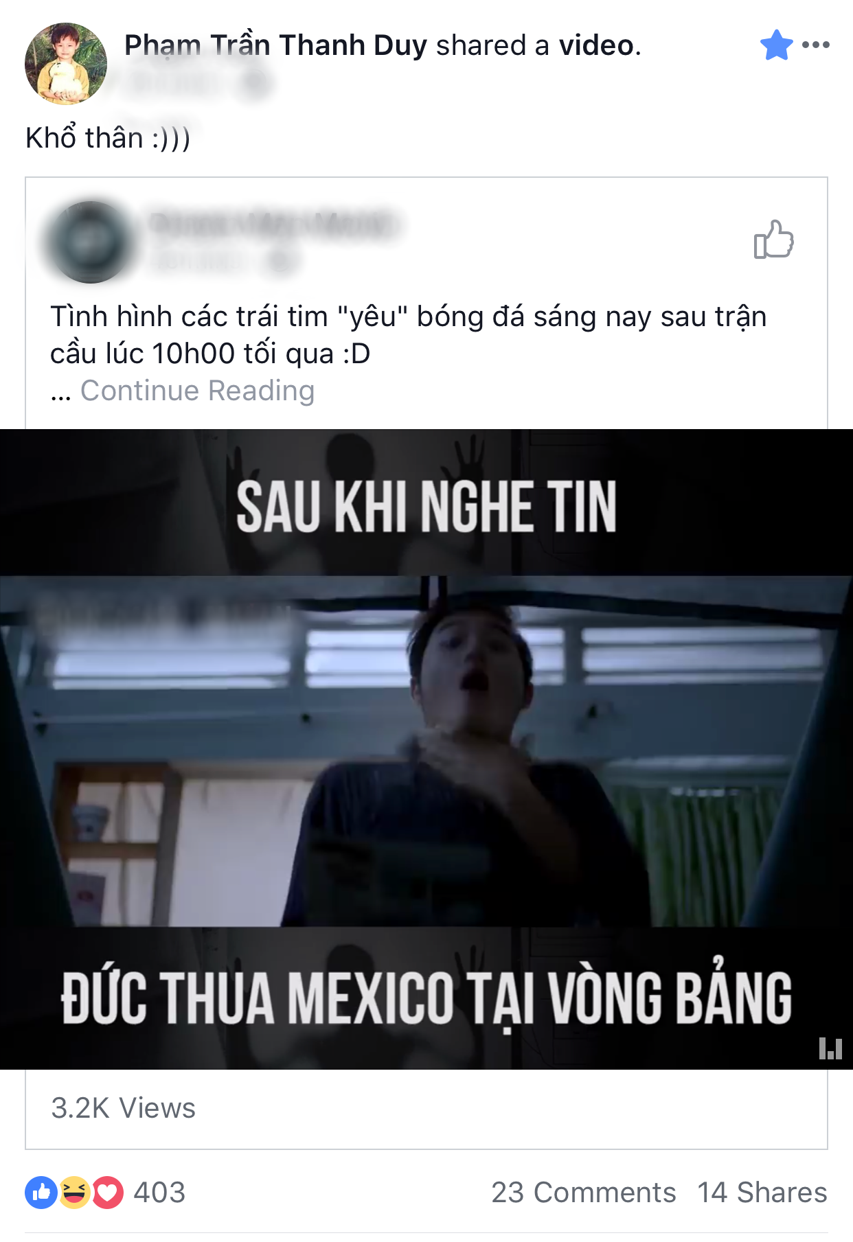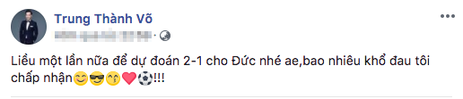 Thanh Duy bày tỏ sự cảm thông với những khán giả đã cổ vũ cho Đức trong trận ra quân đầu tiên tại vòng bảng World Cup 2018.