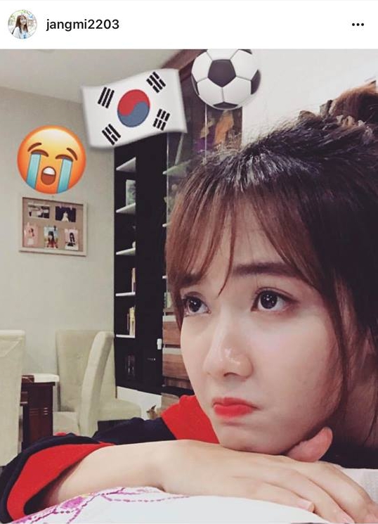 Jang Mi biểu cảm buồn bã khi Hàn Quốc thua cuộc.