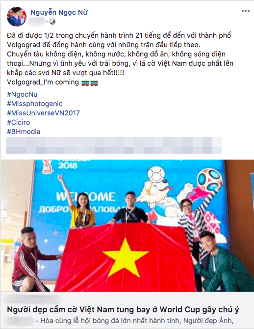 Top 10 Hoa hậu Hoàn vũ Việt Nam 2017 - Ngọc Nữ đang có mặt ở Nga để cổ vũ World Cup 2018.