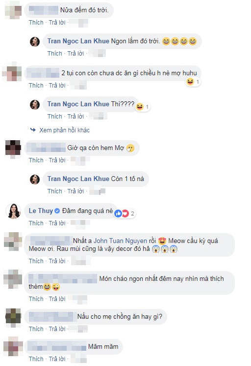 Phía dưới những hình ảnh được Lan Khuê chia sẻ, không ít bạn bè và cư dân mạng bày tỏ sự khen ngợi cho sự đảm đang, khéo léo của chân dài gốc Sài thành. Nhiều người còn trêu chọc cô ngày càng nữ công gia chánh để chuẩn bị về làm vợ, làm dâu, chăm sóc cho tổ ấm nhỏ.