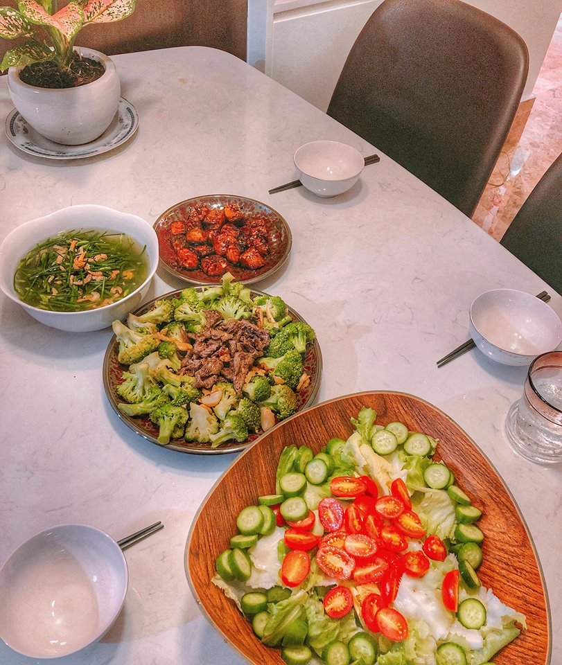 Mỗi bữa ăn luôn được Lan Khuê chăm chút kỹ lưỡng.