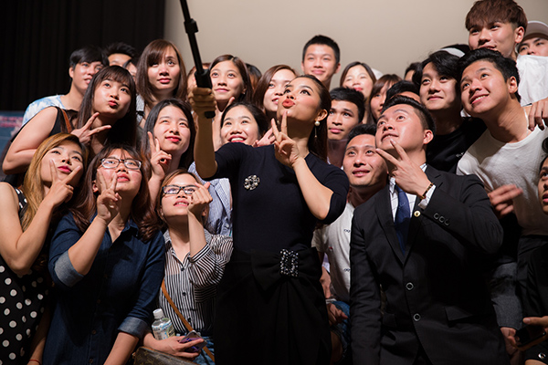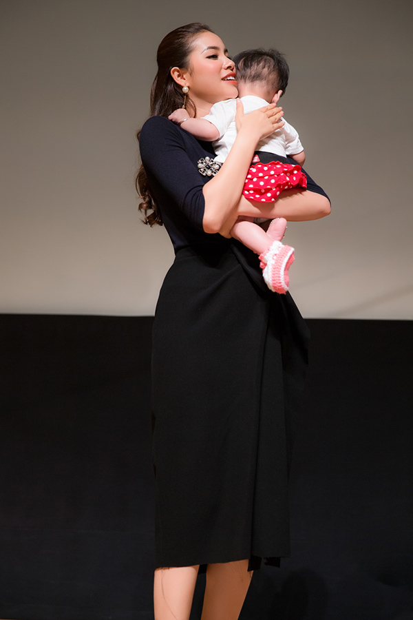 Cô rất ấn tượng với bà mẹ trẻ bế con gái 6 tháng tuổi để mong được chụp ảnh cùng Phạm Hương.