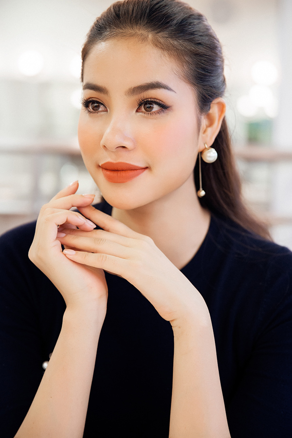 Phạm Hương xuất hiện tại buổi giao lưu với bộ váy thanh lịch của Lâm Gia Khang.