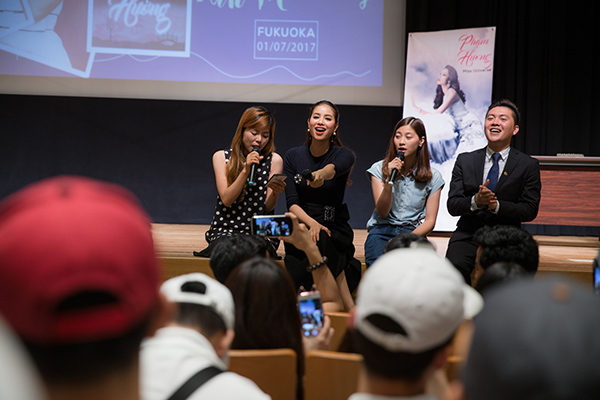 Tranh thủ chuyến công tác ở Nhật Bản, Hoa hậu Hoàn vũ Việt Nam Phạm Hương đã có buổi gặp gỡ với người hâm mộ khá ấm cúng, vui vẻ tại Fukuoka vào cuối tuần vừa qua. Ngoài những bạn đang là du học sinh Việt Nam sang học tập, chương trình còn có sự góp mặt của nhiều người Việt đang sinh sống tại Nhật.