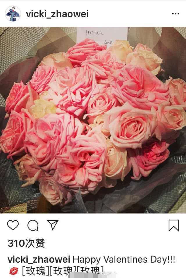 Cũng trong ngày Valentine vừa qua, “Én nhỏ” đã đăng tải trên trang cá nhân hình ảnh bó hoa hồng được gửi tặng. Đồng loạt cộng đồng người hâm mộ của Triệu Vy cảm thấy an tâm hơn vì cho rằng đây chính là hoa hồng của Huỳnh Hữu Long tặng cho cô. Vừa nguôi ngoai được những lo lắng, fan lại bắt đầu thất vọng sau khi thấy hình ảnh một mình đón lễ hội Đèn Lồng của Triệu Vy.