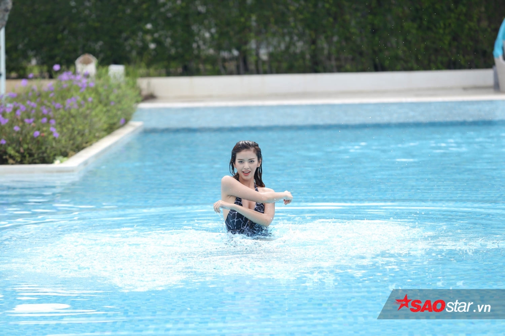 Gương mặt, ánh mắt cùng thần thái của Trúc Anh khiến HLV Minh Tú rất hài lòng vì đúng với tinh thần một bông hoa nở dưới nước.