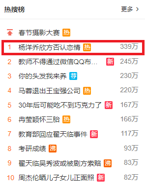 Như vậy, sau cặp đôi Đặng Luân - Lý Thấm lên thớt ngày hôm qua thì hôm nay Dương Dương - Kiều Hân lại đứng đầu top tìm kiếm. Tuy nhiên cả hai cặp này đều lên tiếng phủ nhận tin hẹn hò.