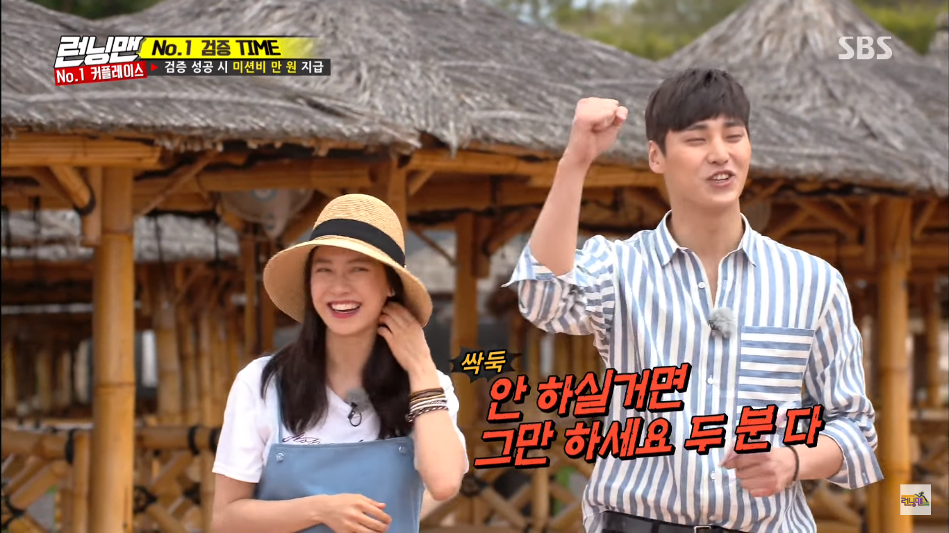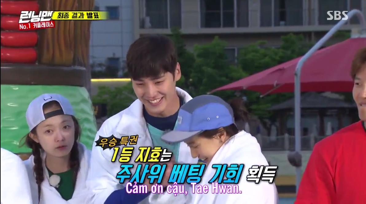 Cả hai rất ngọt ngào nói nhỏ vào tai nhau rất nhiều lần và không dừng lại đó Ji Hyo và Tae Hwan còn thả thính nhau bằng những aegyo đáng yêu. Cuối cùng “cặp đôi thứ 2 mới” này đã có chiến thắng chung cuộc khiến cho các thành viên vô cùng bất ngờ.