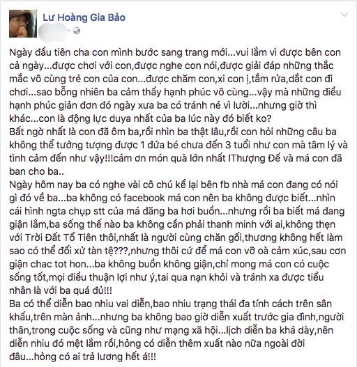 Gia Bảo cũng lên tiếng trên trang cá nhân sau khi bị vợ tố cáo.