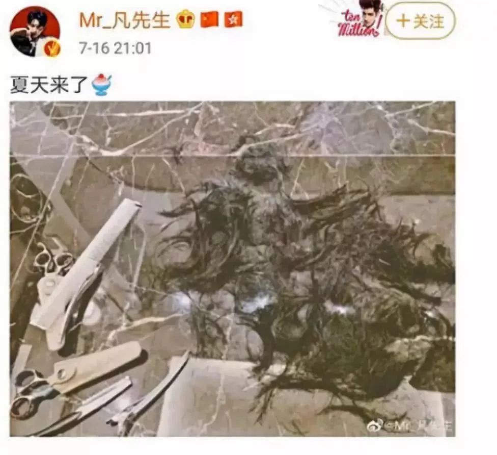 Ngày 25 tháng 6, cô gái này đăng weibo tiết lộ mình đã cắt tóc thì Ngô Diệc Phàm cũng đăng tải hình ảnh cắt tóc, giống như lên tiếng trả lời với nữ sinh.