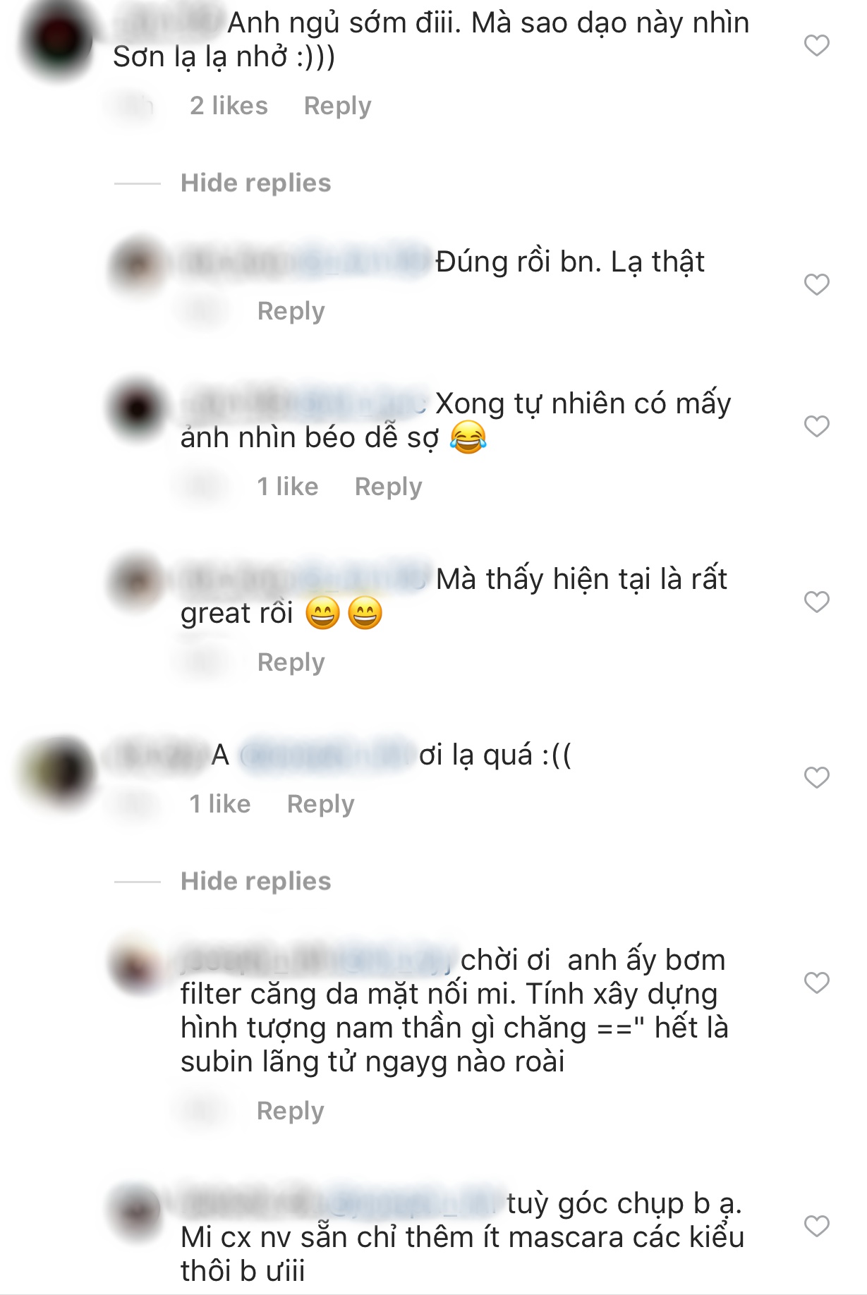 Vừa qua, trên Instagram cá nhân, Soobin Hoàng Sơn gây chú ý khi chia sẻ những bức hình mới nhất. Theo đó, gương mặt giọng ca Phía sau một cô gái có phần khác lạ, nhất là khuôn cằm nhọn, đơ cứng hơn bình thường. Sự khác biệt này lập tức được nhiều người hâm mộ nhận ra và đặt nghi vấn nam ca sĩ sinh năm 1992 vừa “tân trang” lại nhan sắc.