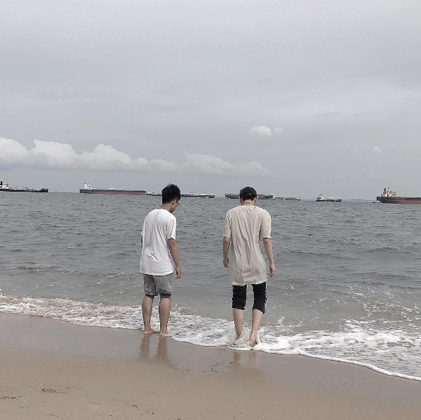Giây phút bình yên của hai anh em Sơn Tùng ngoài bãi biển.