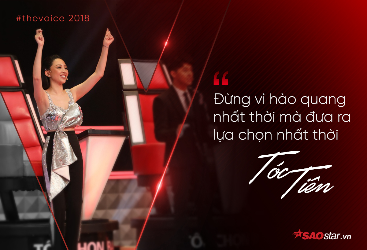 Hơn 15 năm hoạt động trong môi trường showbiz, Tóc Tiên đủ hiểu những hào quang mà nó mang lại. Đó là những sự đánh đổi rất lớn mới có được. Khi phải tranh giành thí sinh Minh Ngọc cùng 3 HLV còn lại, giọng ca Em không là duy nhất ra sức thuyết phục bằng nhiều lý lẽ. Trong đó, câu nói “Đừng vì hào quang nhất thời mà đưa ra lựa chọn nhất thời” dường như đánh đồng đến tâm lý của Minh Ngọc khiến cô gái này hoang mang, lưỡng lự để đưa ra quyết định.